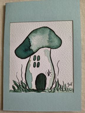 Webshop » Originele wenskaarten » Geschilderde wenskaarten » 106 paddenstoel lichtblauw