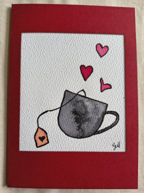 Webshop » Originele wenskaarten » Geschilderde wenskaarten » 107 theekopje rood