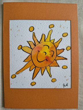 Webshop » Originele wenskaarten » Geschilderde wenskaarten » 115 zon oranje