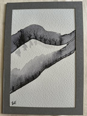 Webshop » Originele wenskaarten » Geschilderde wenskaarten » 117 landschap grijs