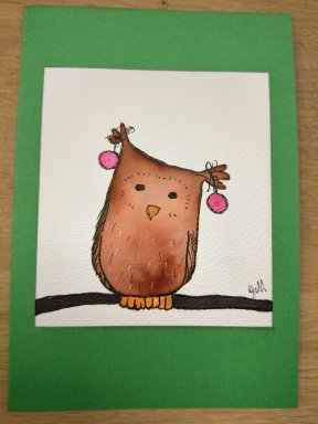 Webshop » Originele wenskaarten » Geschilderde wenskaarten » 129 uil groen