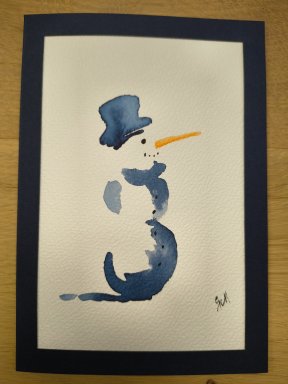 Webshop » Originele wenskaarten » Geschilderde wenskaarten » 133 sneeuwman donkerblauw