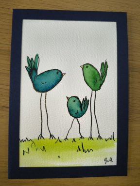 Webshop » Originele wenskaarten » Geschilderde wenskaarten » 144 vogeltjes donkerblauw