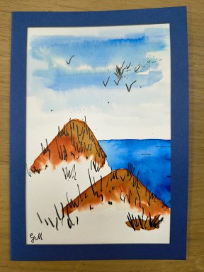 Webshop » Originele wenskaarten » Geschilderde wenskaarten » 146 duinen blauw
