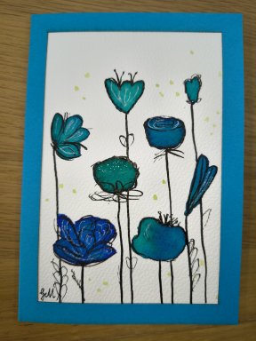 Webshop » Originele wenskaarten » Geschilderde wenskaarten » 147 bloemen blauw