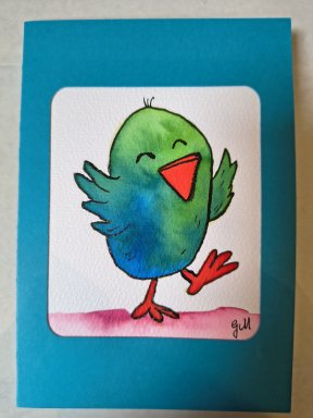 Webshop » Originele wenskaarten » Handgeschilderde wenskaarten » 184 vogel blauw